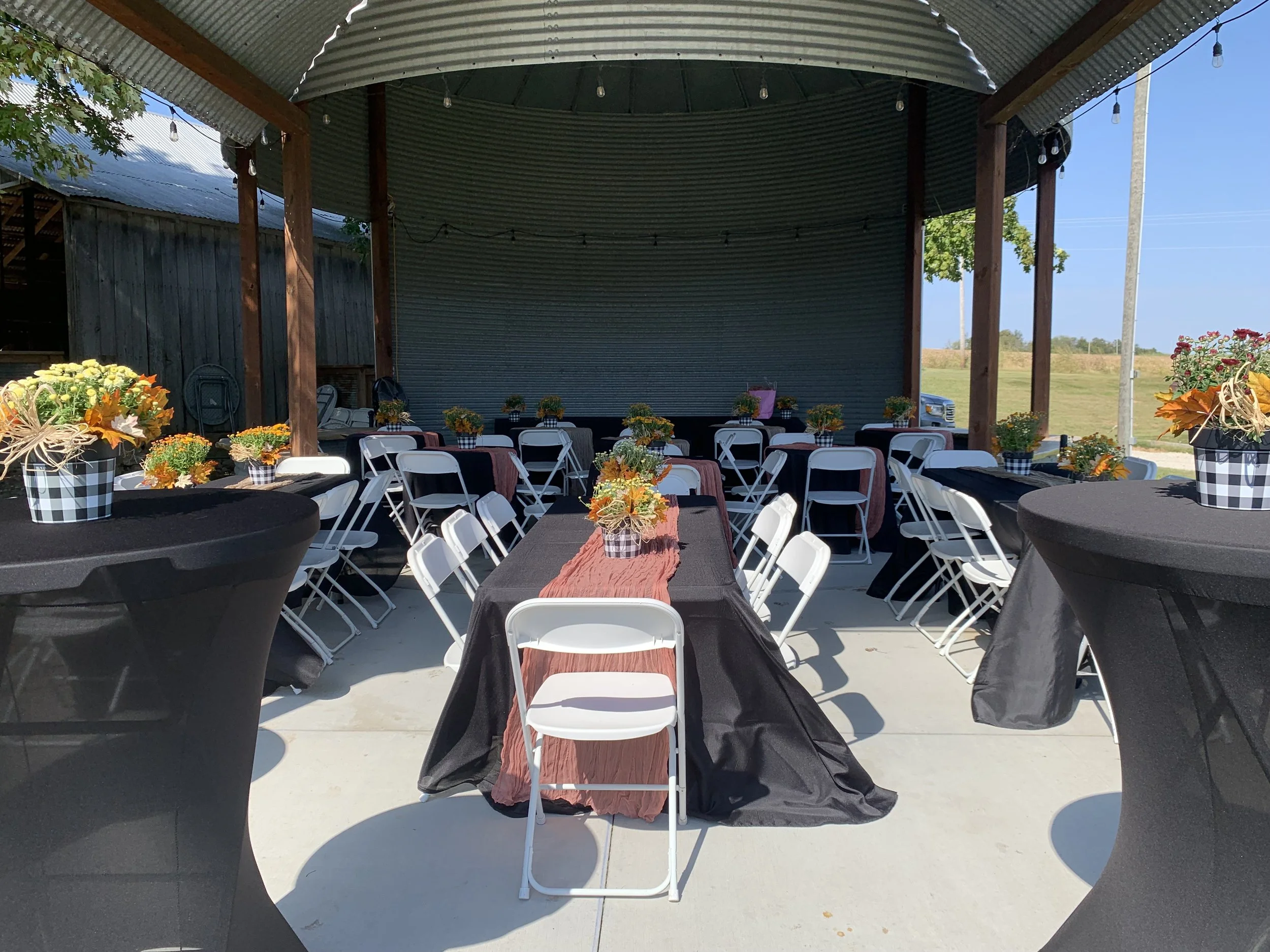 Comfortably accommodates up to 60 guest. Can also overflow outside on the lawn.